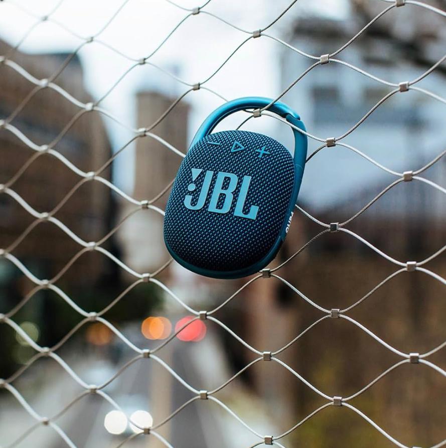 Features: It has an integrated carabiner, is waterproof and dustproof with an IP67 rating, and offers up to 10 hours of playtime on a single charge.